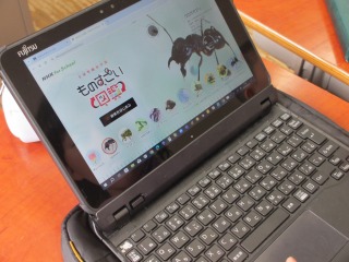 タブレットには情報がいっぱい。二人で、いろんなサイトをのぞきにいき、「あ、かぼちゃもある!」「どんぐり!」など、口々に言いながら、マッピングにまとめていきました。