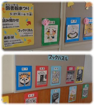 図書室前の掲示板には、祭りの催しを知らせるポスターがあり、そのなかの“BOOKパズル”も張られていました。