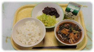 メニューは、くじらのノルウェー風、ゆでキャベツ、みそ汁、米飯そして、牛乳でした。