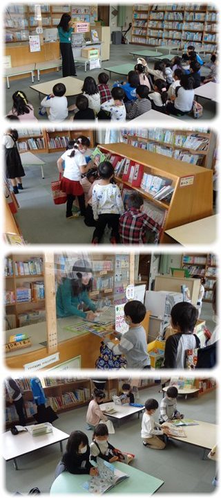 学校図書館司書から、図書館での約束事や開館時間、本の貸し借りの方法などを教わっていました。