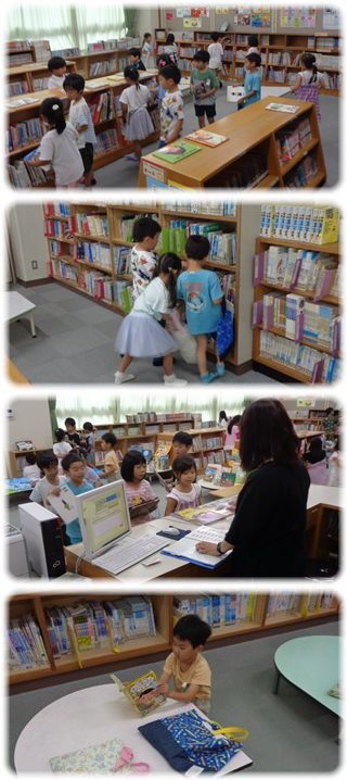 1年生が図書館で、夏休みに読む本を借りていました。