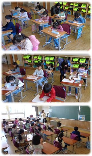 どの子も書き終えると、「できた」「見て」などと言って教師の方にプリントを向けていました。