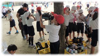 まずは、忍者になり切って、1年生と2年生の対決シーン。