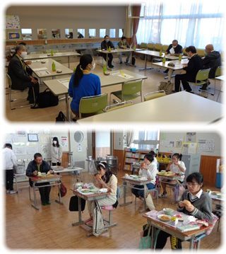 今日は、一人ずつ教室に分かれて、子どもたちの準備や喫食の様子を見ながら、一緒に食べてもらいました。
