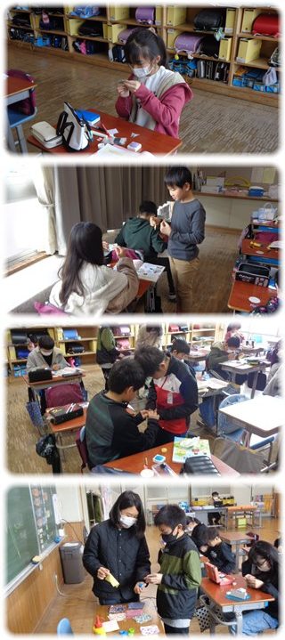 家庭の学刺しゅうで身に付けた、手縫いの技を思い出し、友だちと教え合って作りました。