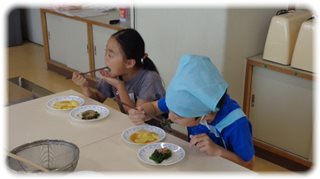 この時間は、“青菜のおひたし”と“ゆでいも”という、ゆで料理に挑戦しました。