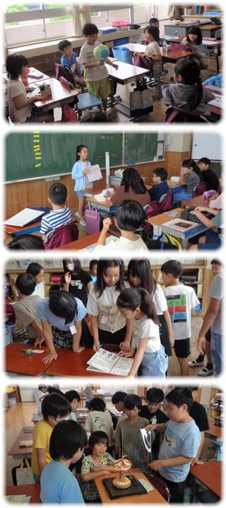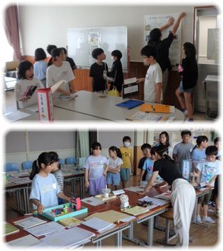教室を巡っていると、夏休みに取り組んだ自由研究や工作などの学習成果を披露し合っている学級がいくつもありました。