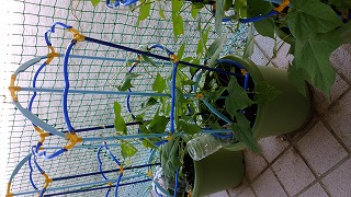 つるをそのままにしておくと、2人・3人横のところまでつるが伸びていたり、ネットにまき付いてしまうくらいです。ほぼ毎日つるのまき直しを続けています。