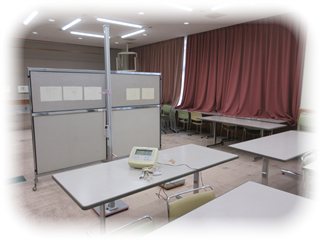 ランチルームに新たにカーテンを設置され、前の通りに面したこの部屋でも発育測定や検診が行えるようになりました。