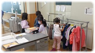 何をどんなふうに入れるとよいか、教師と確かめながら帰りの用意をしました。