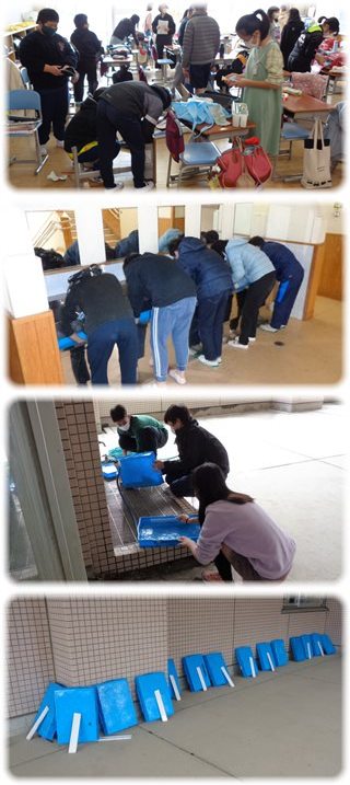 学用品を入れていた引き出しやロッカーのかごは、流しに運んで