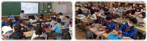 子どもたちは、動画に登場する先生の説明を聞き、お手本のシーサーを見ながら、“マイ シーサー”を作っていました。