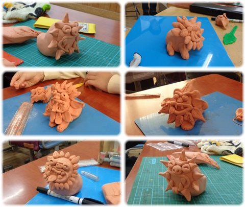 3年生が図工の時間に作っていたのは、“シーサー”。