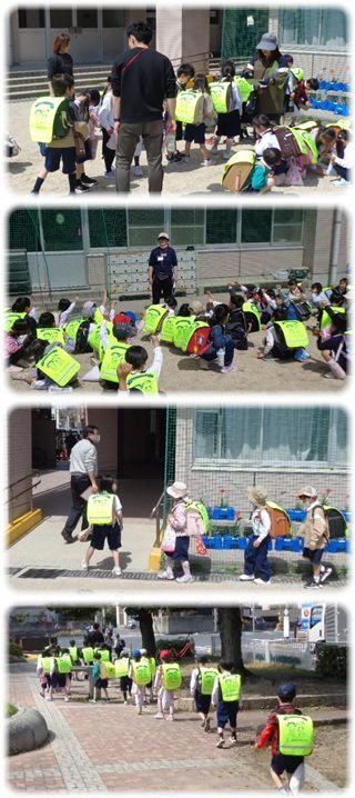 1年生は、同じような方向へ、よく似た通学路を通って帰る子どもたちがグループを組んで一緒に帰ります。