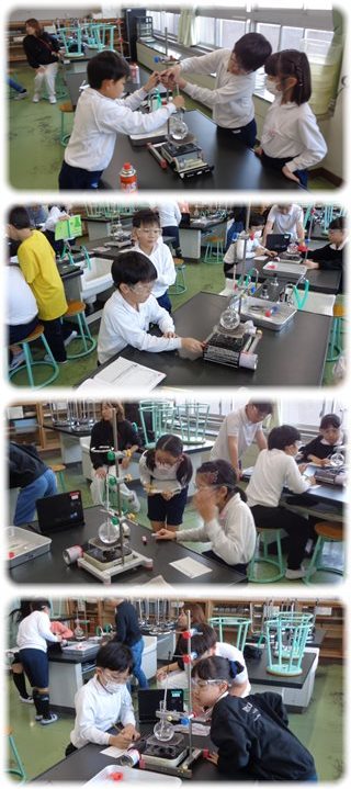 この時間は、実験を通して、水を熱したときの変化を観察しました。