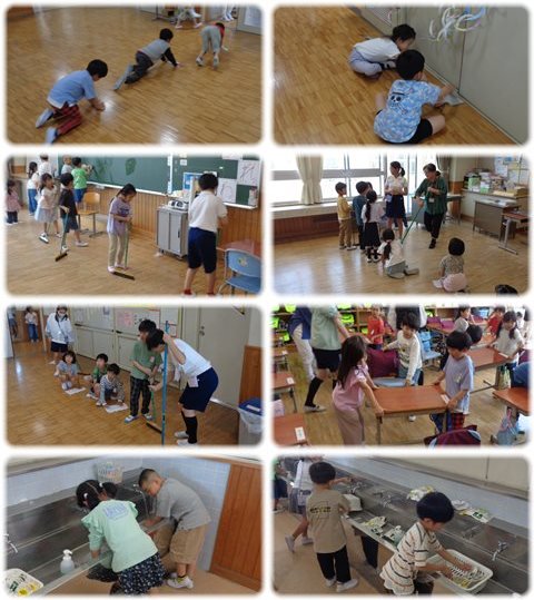 1年生も、6年生の力を借りて、自分たちの使うところをきれいにするために、一生懸命掃除していました。