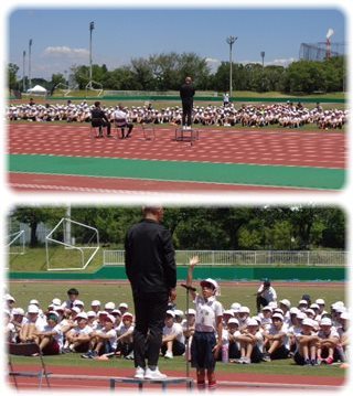 他の子どもたちよりも早く給食を済ませた選手は、徒歩で中央緑地に向かいました。