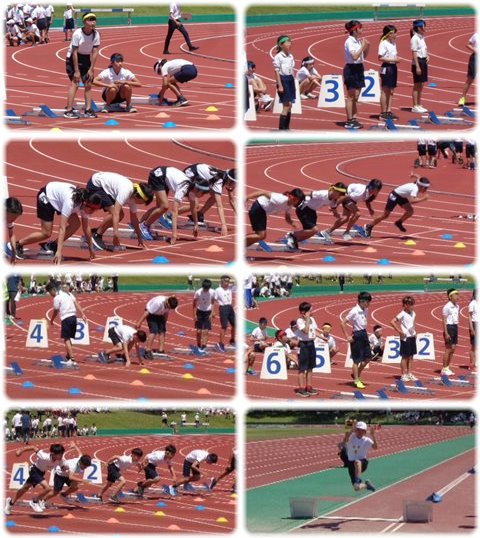100m走のスタート地点近くから見たその子の表情からは、特に緊張は感じられず、スターティングブロックを調節してスタートの練習をするなど、とても落ち着いた様子でした。