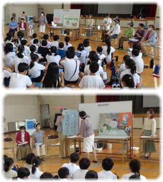 “四日市法人会 女性部”の皆さんを講師に招いて、「租税教室」を開き、紙芝居やクイズを通して、税金の役割や納税の大切さについて学び、考えました。