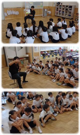 絵本のセリフと担任の読み方に、時折、体をよじって大笑い。