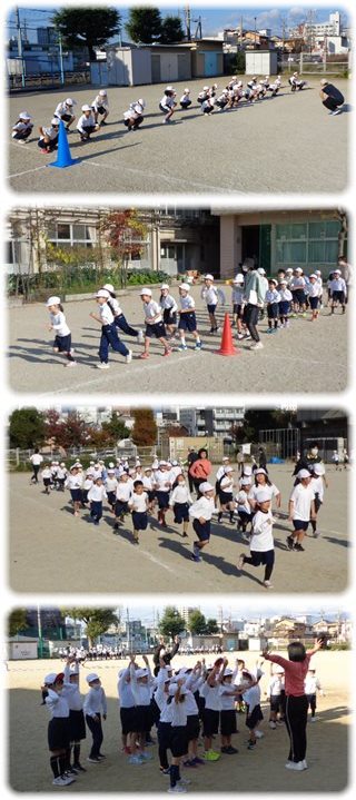 今日から1年生も、2年生と一緒に朝のかけ足に取り組みます。