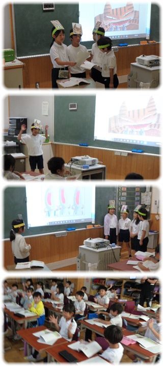 台詞以外の本文は、クラスのみんなが声を合わせて読んで音読劇は進みました。