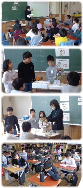 4年生が栄養教諭と“野菜”のことを学んでいました。
