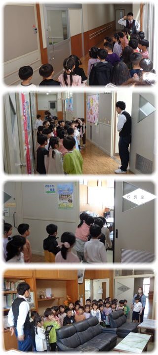 1年生が教師と一緒に、学校探検をしているところでした。