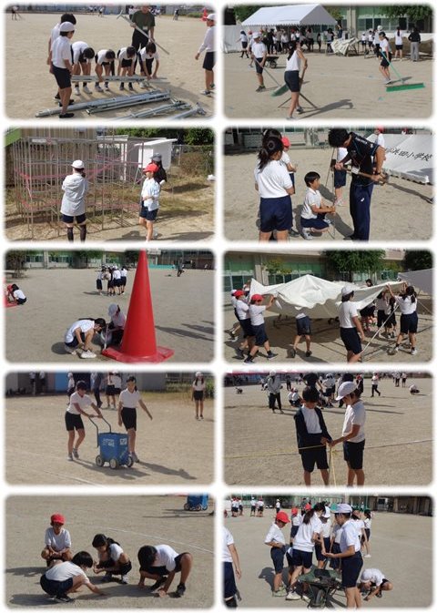 運動会の係ごとに集まった子どもたちは担当教師の説明を聞いて、早速作業に取り掛かりました。