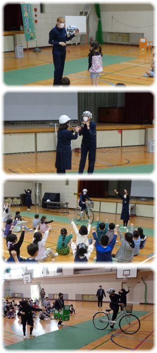 まず、自転車に乗るときに守ること「は・ひ・ふ・へ・ほ」を腹話術人形の“けんちゃん”と指導員の楽しいやり取りや、指導員の実演通して教わりました。