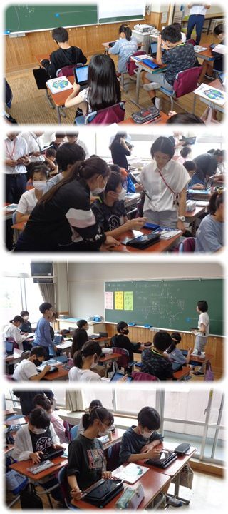 子どもたちは、ペアの子とタブレットの画面を共有し、2人で話をしながら協力、分担してピラミッドチャートにまとめていきました。