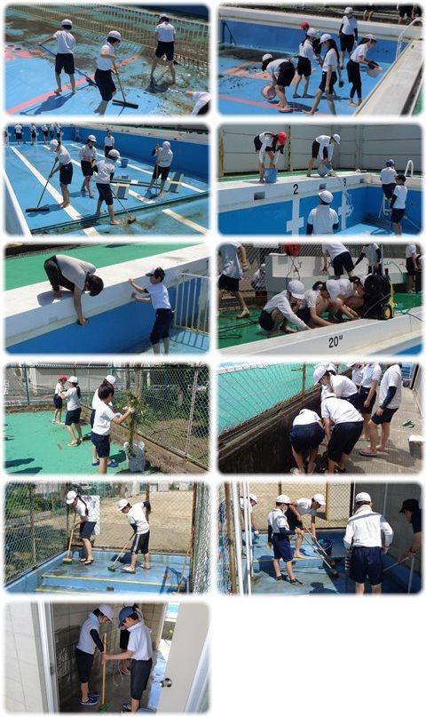 こんな状態のプールをきれいにして、子どもたちが安心して、安全に活動できるプールにするのです。