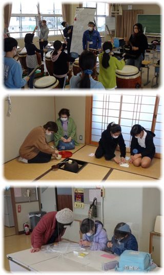 11のクラブのうち、太鼓、茶道、手芸、グランドゴルフの4つは、地域のボランティア指導者の方々のお世話になって練習を重ねてきました。