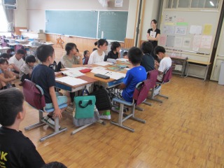 一つのグループが代表になって、「みんながそうじを頑張れるような合言葉を決める」ことを目的に話し合いを進めていました。