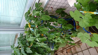 写真は夕方に撮ったので、今日咲いた花がしぼんだのと明日の朝咲く花のつぼみしか写すことができませんでしたが、やっと多くの子の朝顔に花が咲き出しました。毎朝校長室の外で水をやっている1年生から「今日、私は3個も咲いた」「ぼくはまだ咲いていない。」「でもつぼみがあるから、明日には咲くのとちがう?!」と、話している声が聞こえてきます。