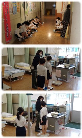 今日は、3年生が保健室で身長と体重をはかりました。
