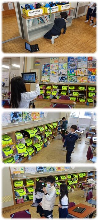 子どもたちは、壁面の絵画作品やランドセル、算数ブロックなどなど、教室内のいろんなものを数えて写真を撮っていました。