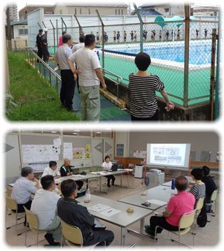 始まりの、委員長、校長のあいさつが終わったら、早速子どもたちが学習する教室へ…、いえ、今日は教室ではなくプールへ。