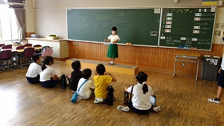 ジェスチャーで班の代表の子がヒントを出します。そのジェスチャーを観て、答えていきます。車、赤ちゃん、鉛筆、にじ、ゆびわ、本、パンダ・・・・難しいお題も入っていますが、子どもたちは柔らかい頭の持ち主の集まりです。次から次へと言いテンポで答えていきます。