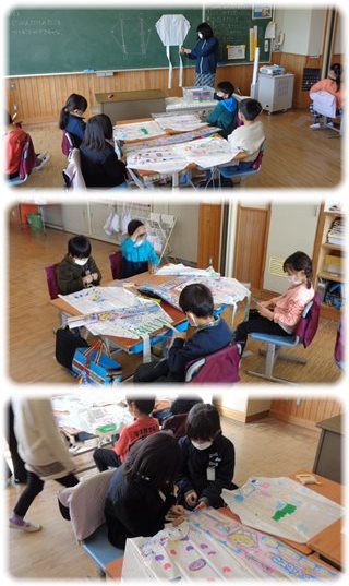 1年生が教室で“たこ”を作っていました。