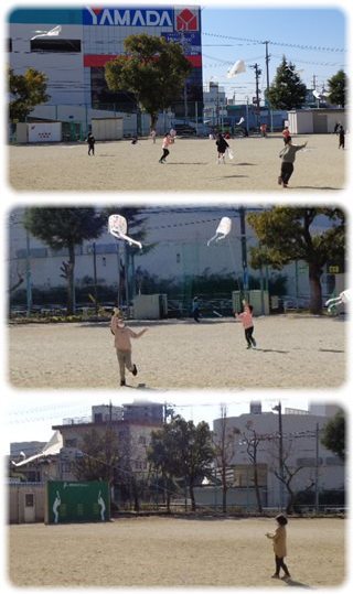 みんなできたら、早速、運動場に出て“たこあげ”に挑戦。