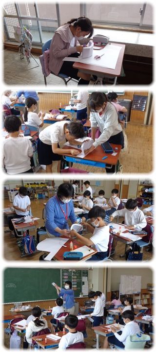 5年生が図工で、橋づくりに挑戦していました。