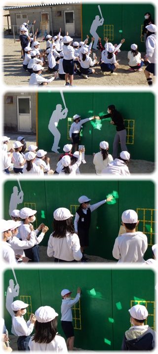 中には、違いがよくわからなかった子もいましたが、日光の当たる手の甲で感じる温度と、掌で感じる投てき板の温度に明らかに違いがあるようです。