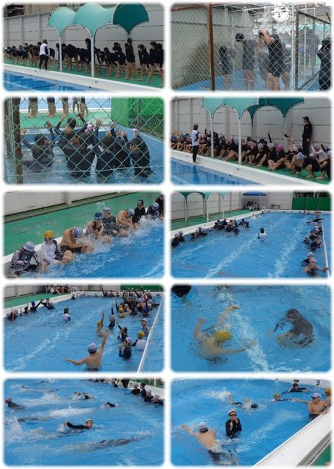 この時間は、6年生が自分たちできれいに掃除したプールに入水。