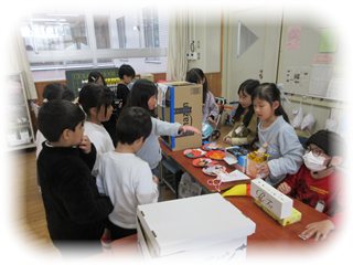 自由にあちこちの『お店」を回って楽しむ1年生。