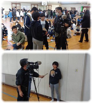 始業式からグローブの伝達、キャッチボールの様子を撮影し、グローブを受け取った3人にインタビューしていましたが、取材を受けた3人は、とても緊張したことやもらった喜び、感謝の気持ちなどを話していました。