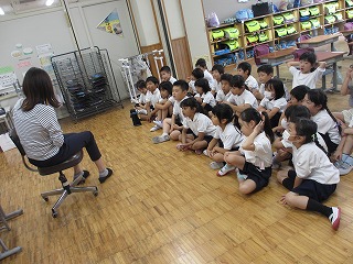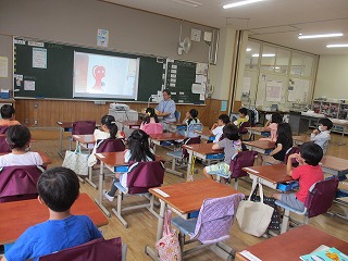 今週は1年生が図書ボランティアさんに読み聞かせをしてもらいました。