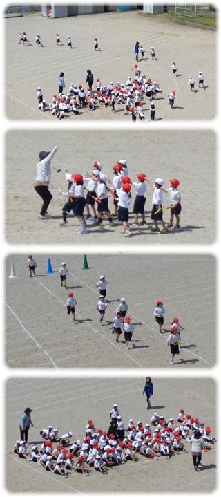 走ってきた子がみんな着いたところで、教師を相手に