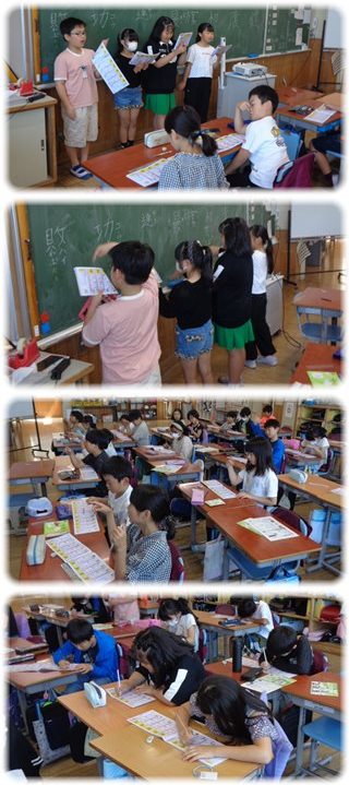 漢字ドリルを手に前に出ているのは、クラスの“学習係”の4人。