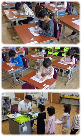 全てかいたら教師のところへ持って行って、丸を付けてもらいました。